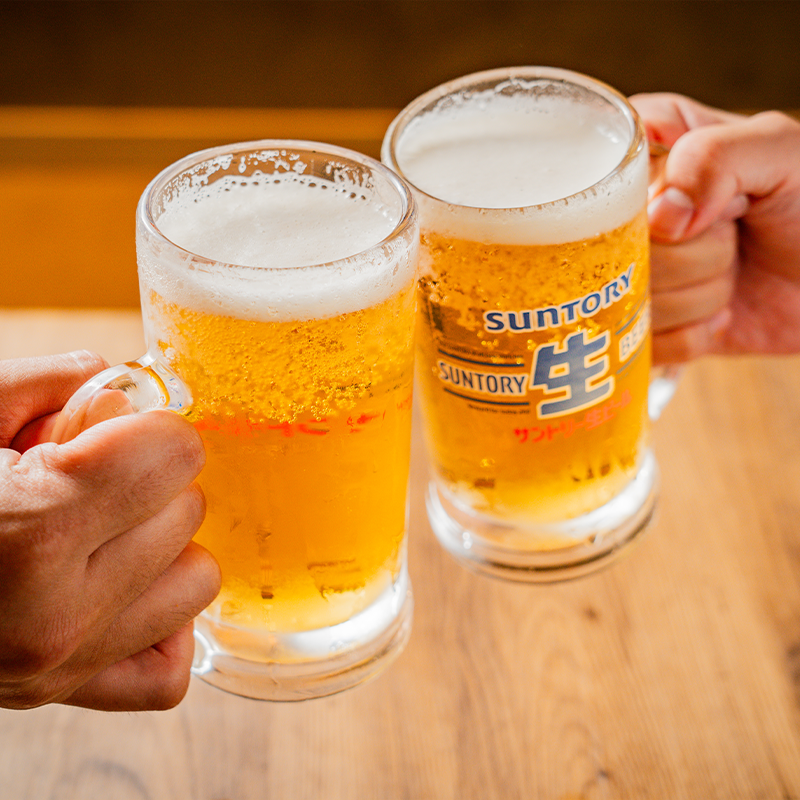 ※+500円で生付き飲み放題にグレードアップもできます。
